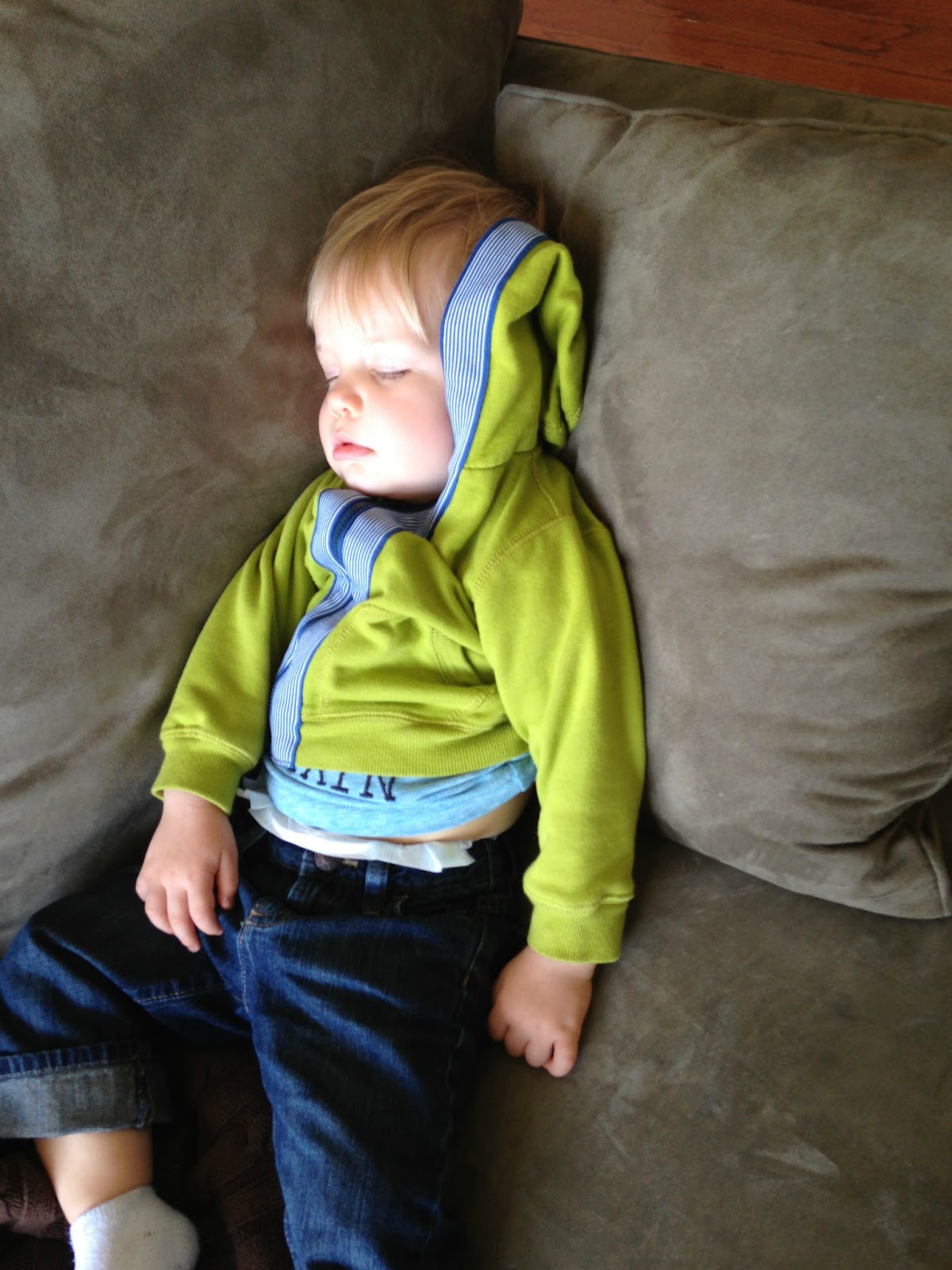 Case in point.... here is Nathaniel after a short car ride today. Silly boy. It was an hour before his afternoon nap was suppose to happen. I carried him in and laid him on the couch thinking it would wake him up... not so much. An hour later (after a transfer to his crib) he woke up.